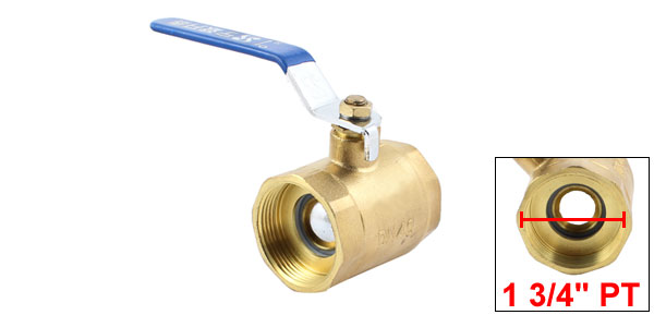 Product Name Ball Valve Type Female Thread Handle Size 101 x 20mm/4'' x 0.79'' (L*W) Body Size 73.2 x 52.4mm/2.88'' x 2.1'' (L*W) Female Thread Diameter 45mm Female Thread Size 1 3/4" PT Material Brass Color Gold Tone, Blue Net Weight 605g Package Content 1 x Ball Valve - Reviews