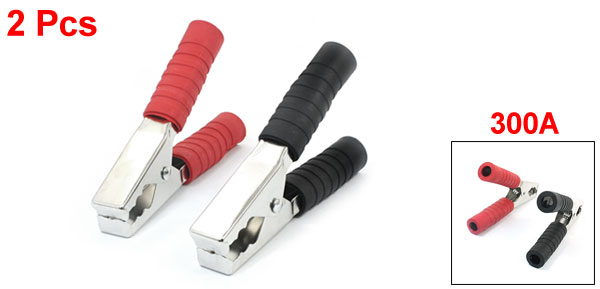 Plastic Covered Insulated Nonslip Handle Car Battery Alligator Clip 300A 2Pcs
