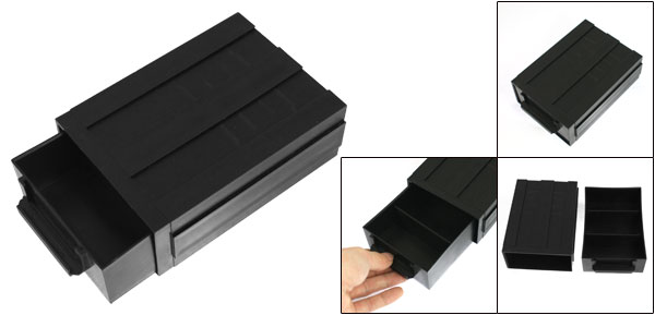 Product Name Electronic Components Composed Drawer Case Compartments Quantity 3 Each Compartment Size 8.5 x 4cm / 3.35" x 1.6" (L*W) Overall Size 14 x 9.4 x 4.8cm / 5.5" x 3.7" x 1.9"(L*W*H) Mounted Hole Size 13 x 8mm / 0.5" x 0.3" (L*D) Color Black Material Hard Plastic Net Weight 174g Package Content 1 x Electronic Components Composed Drawer Case - Reviews
