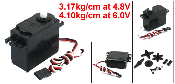 0.19sec/60 degrees at 5.0VTorque 3.17kg/cm at 4.8V