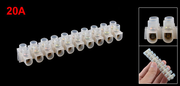 Plastic Housing 10 Positions Wire Connector Barrier Terminal Block 20A