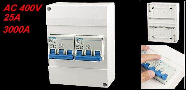 Product Name Circuit Breaker Model DZ47-63 Type C25 Rated Voltage AC 400V Rated Circuit Breaking Capacity 3000A Rated Current 25A Total Size (Approx.) 15.8 x 12.3 x 7cm/ 6.2" x 4.8" x 2.8" (L*W*H) Number of Poles 3 Material Plastic, Electronic Components Color As Picture Shown Weight 609g Package Content 1 x Circuit Breaker - Reviews