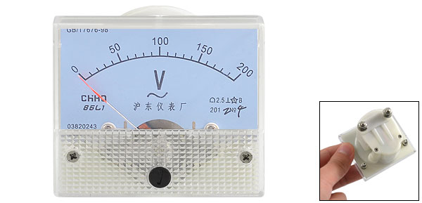 Product Name AC Voltage Panel Meter Scale Range AC 0-200V Accuracy Class 2.5 Material Plastic Color White, Clear, Beige Back Screw Dia. 3.8 mm / 0.15" & 2.8 mm / 0.11" Panel Size 6.3 x 5.5 x 1.1 cm / 2.5" x 2.2" x 0.4" (L*W*T) Overall Depth 6 cm / 2.36" Weight 68g Package Content 1 x AC Voltage Panel Meter - Reviews