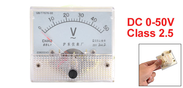 Product Name AC Voltage Panel Meter Scale Range AC 0-50V Accuracy Class 2.5 Material Plastic Color White, Clear, Beige Back Screw Dia. 3.8 mm / 0.15" & 2.8 mm / 0.11" Panel Size 6.3 x 5.5 x 1.1 cm / 2.5" x 2.2" x 0.4" (L*W*T) Overall Depth 6 cm / 2.36" Weight 69g Package Content 1 x AC Voltage Panel Meter - Reviews