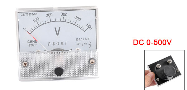 Product Name DC Voltage Panel Meter Scale Range DC 0-500V Accuracy Class 2.5 Material Plastic Color White, Clear, Black Back Screw Dia. 3.8 mm / 0.15" & 2.8 mm / 0.11" Panel Size 6.3 x 5.5 x 1.1 cm / 2.5" x 2.2" x 0.4" (L*W*T) Overall Depth 4.3 cm / 1.69" Weight 63g Package Content 1 x DC Voltage Panel Meter - Reviews