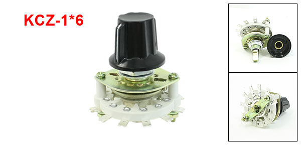 Product Name Rotary Switch Model KCZ-1*6 Material Metal, Ceramics, Plastic Dimensions(knob not included) 4.5 x 4.5cm / 1.8" x 1.8"(Max.D*H) Fit Mounting Hole Diameter 10mm / 0.39" Pin Number 7 Contact Type 1 Pole 6 Position Net Weight 44g Package Content 1 x Rotary Switch - Reviews