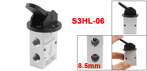 Product Name Mechanical Valve Model S3HL-06 Button Type Handle Control Type Extenal Control Medium 40 Micron Filtered Air Port Size PT 1/8" (8.5mm) Fixing Screw Hole 4.1mm/0.16''
