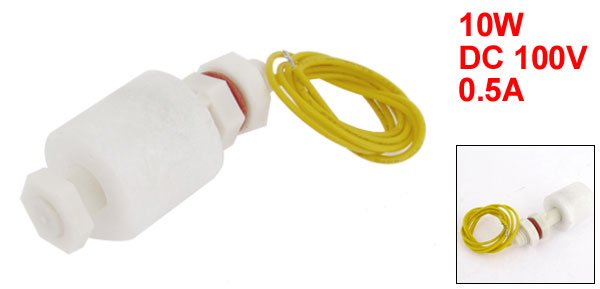 Product Name Water Level Sensor Contacts NO+NC Max Contact Rating 10W Max Switch Voltage 100V DC Max Switch Current 0.5A Max Breakdown Voltage 220V DC Max Carry Current 1.0A Max Contact Resistance 100mΩ Temperature Rating -10 ~ +85 Degree Float Ball Material P.P Float Body Material Plastic Float Ball Size 22 x 22mm/ 0.87" x 0.87" (D*L) Screw Thread Diameter 9mm/ 0.35" Retaining Clip Diameter 13mm/ 0.51" Body Total Length 4.2cm/ 1.7" Cable Length 32cm/ 12.6" Color White,Yellow Net Weight 14g Package Content 1 x Water Level Sensor - Reviews