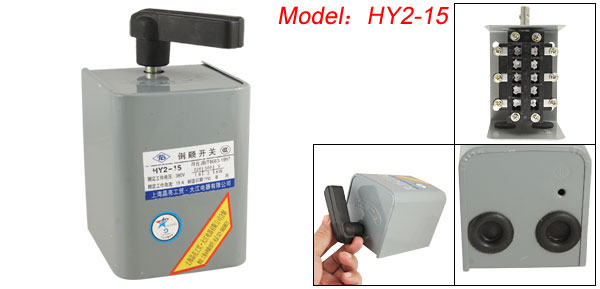 Product Name Forward Reversing Switch Model HY2-15 Rated Working Voltage 380V Rated Working Current 15A Rated Working Power 3KW Rated Frequency 50/60Hz Handle Size 8.5 x 2.4 x 1.7cm/ 3.3" x 0.9" x 0.7" (L*W*T) Overall Size 10.1 x 7.6 x 7.9cm/ 4" x 3" x 3.1" (L*W*T) Mount Size 6.8 x 6cm/ 2.7" x 2.4" (L*W) Material Plastic, Metal, Electric Part Color As Picture Shown Net Weight 483g Package Content 1 x Forward Reversing Switch - Reviews