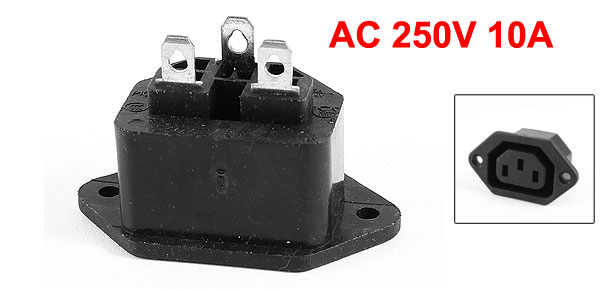 DetailsPlastic Shell IEC320 C13 Female Power Socket Adapter Convertor AC 250V 10A  Product Name Power Socket Material Plastic, Metal Main Color Black Power Supply AC 250V 10A Plug Type IEC320 C13 Terminal Quantity 3 Mounting Hole Dia 3mm/0.12" Mounting Hole Distance 4 cm / 1.6" Total Size 5 x 2.8 x 2 cm / 2" x 1.1" x 0.8" (L*W*H) Weight 17g Package Content 1 x Power Socket