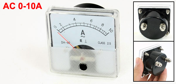 Product Name Analog Amperemeter Measuring Ampere Range AC 0-10A Accuracy Class 2.5 Meter Face Size(Approx) 6 x 6 x 1.2cm / 2.3" x 2.3" x 0.47"(L*W*T) Thread Dia(Approx) Big One: 0.5cm / 0.2"