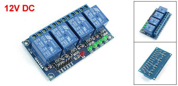 Product Name Relay Module Model SRD-12VDC-SL-C Number of Channels 4 Coil Voltage 12V DC Contact Capacity 10A, AC 250V/125V, DC 30V/28V Size 7.3 x 4 x 2cm/2.9" x 1.6" x 0.78"(L*W*H) Material PCB Color Blue Weight 64g Package 1 x Relay Module - Reviews