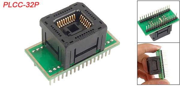Product Name Programming Socket Adapter Type PLCC to DIP Material Plastic, Metal DIP Pin Pitch: 2.54mm/0.1'' Number: 32 PLCC Pin Pitch: 1.27mm/0.05'' Number: 32 Total Size 44 x 23 x 28mm/1.7'' x 0.9'' x 1.1'' (L*W*H) Color Black, Green Weight 14g Package Content 1 x Programming Socket Adapter - Reviews