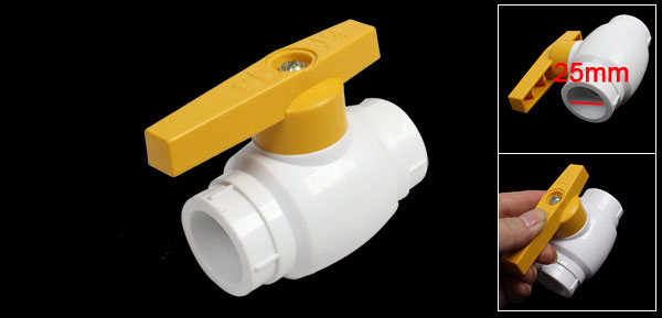 Product Name Ball Valve Ends Type Slip x Slip Slip End Size 25mm x 25mm / 0.984" x 0.984" Handle Size 8 x 2.2cm/ 3.1" x 0.9"(L*Max.W) Overall Size (Approx.) 8 x 7 x 4cm/ 3.1" x 2.8" x 1.6"(L*Max.W*H) Color White,Yellow Material PPR Weight 114g Package 1 x Ball Valve - Reviews