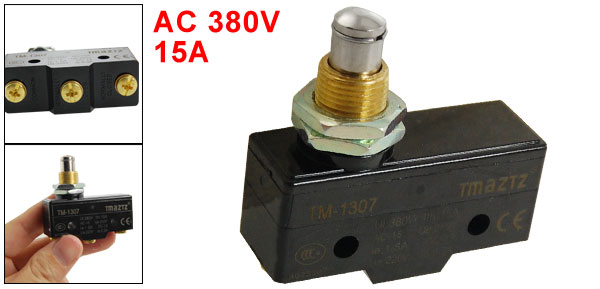 Product Name Micro Switch Model No. TM1307 Action Type Momentary Contact Type 1NO 1 NC Actuator Type Plunger Voltage/ Current Ui: AC 380V, Ith 15A Ue/ Ie AC 250V 1.5A DC 220V 0.3A Switch Body Size(Each) 50x 17 x 24mm/ 2" x 0.67" x 0.94" (L*W*H) Plunger Height 23mm/ 0.9" Hole Size 4mm Material Plastic & Metal Color Black & Silver Tone Net Weight 48g Package Content 1 x Micro Switch - Reviews