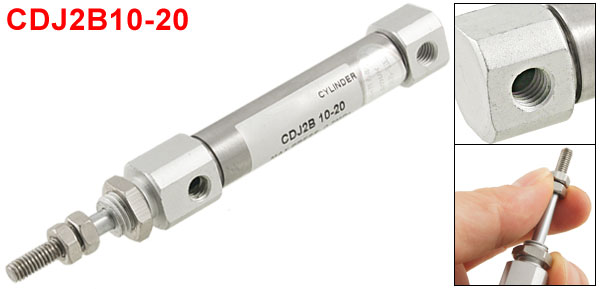 Product Name Air Cylinder Model CDJ2B10-20 Action Double Action Rod Type Single Rod Bore 10mm Stroke 20mm Rod Diameter 4mm Rod Thread Diameter 4mm Thread Hole Diameter 4mm Max Press 0.7Mpa Overall Size(Approx) 97 x 12 x 12mm/ 3.8" x 0.47" x 0.47" (L*W*H) Material Aluminum Alloy Weight 28g Package Content 1 x Air Cylinder - Reviews