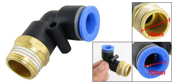 Item Name Quick Fittings Overall Size 47 x 37 x 21mm/1.8" x 1.4" x 0.8"(L*W*T) Inner Diameter (Blue End) 10mm/0.393“ Thread Diameter 19mm/0.748" Material Chrome-plated Brass & Plastic Color Black, Gold Tone, Blue Weight 34g Package Content 1 x Quick Fittings - Reviews