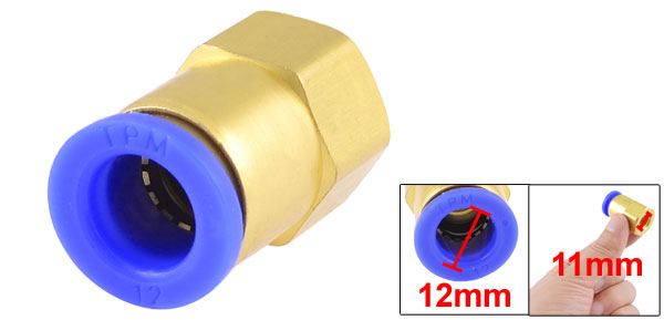 Item Name Quick Fittings Total Size 33 x 24mm/ 1.3'' x 0.94'' (L*Max.D) Thread Size 1/4'' PT Inner Diameter (Blue End) 12mm/ 0.47'' Main Material Metal, Plastic Color Gold Tone, Blue Weight 21g Package Content 1 x Quick Fittings - Reviews
