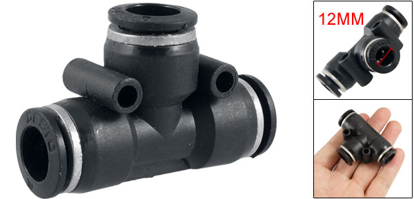 Pneumatic 12mm to 12mm T Connector Quick Fittings Black