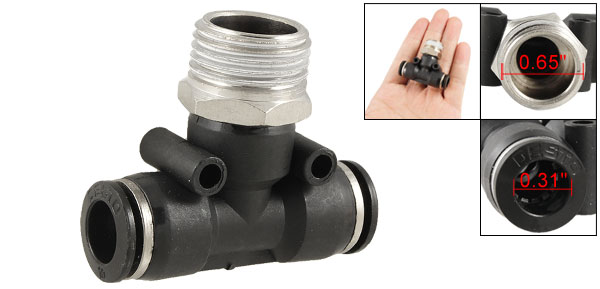 Item Name Quick Fittings Material Alloy & Plastic Color Silver Tone, Black Thread Diameter 16.5mm/ 0.65" Inner Diameter (Black End) 8mm/ 0.31" Overall Size 45 x 39 x 15mm/ 1.8" x 1.5" x 0.6" (L*W*H) Weight 23g Package Content 1 x Quick Fittings - Reviews