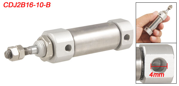 Product Name Air Cylinder Model CDJ2B16-10-B Action Double Action Rod Type Single Rod Bore 16mm Stroke 10mm Rod Diameter 5mm Rod Thread Diameter 4.8mm Thread Hole Diameter 4mm Max Press 0.7Mpa Overall Size(Approx) 85 x 18 x 18mm/ 3.3" x 0.7" x 0.7" (L*W*H) Material Aluminum Alloy Weight 54g Package Content 1 x Air Cylinder - Reviews