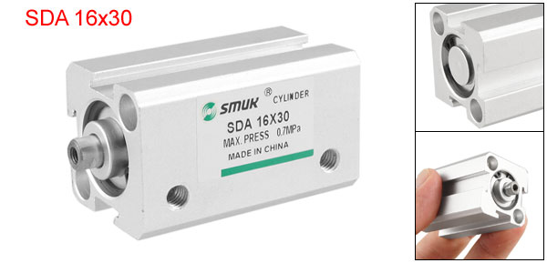Product Name Thin Air Cylinder Model No. SDA 16x30 Motion Type Double Action Bore 16mm Stroke 30mm Max Working Pressure 0.7Mpa Ensured Pressure Resistance 10.2kgf/cm2 Piston Rod External Diameter 6mm/ 0.24" Inlet / Outlet Thread Diameter 5mm/ 0.2" Mounting Thread Diameter 4.2mm/ 0.16" Working Medium Pass Filtered & Lubricator Compress Air Main Material Aluminum Alloy Color Silver Tone Size 28 x 28 x 55mm/ 1.1" x 1.1" x 2.2" (L*W*H) Net Weight 75g Package Content 1 x Thin Air Cylinder - Reviews