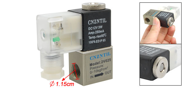 Material Metal, Plastic Power Consumption DC 12V 3W Current 250mA Operating Pressure 0 ~ 10 kgf/cm2 Temprature Rise 60°C Port Inner Dia.(Each) 1.15cm / 0.45" Hex Connector Inner Dia 10mm / 0.39" Total Size (Approx) 6.1 x 2.2 x 6cm / 2.4" x 0.9" x 2.4" (L*W*H) Color As Picture Shown Weight 140g Package Content 1 x Solenoid Valve - Reviews
