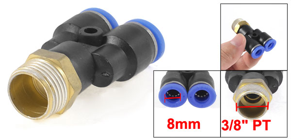 Pneumatic 3/8" PT Male Thread to 8mm Y Shape One Touch Quick Connector Joint