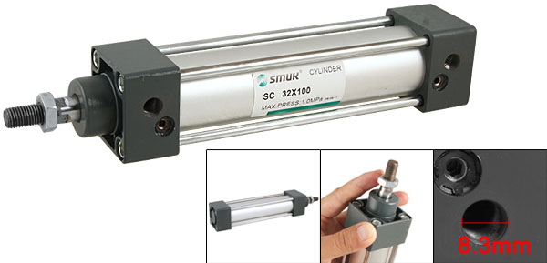 Product Name Air Cylinder Model SC32X100 Action Double Rod Type Single Rod Bore 32mm Stroke 100mm Rod Dia 9.9mm Port Dia 8.3mm Max Press 1.0Mpa Overall Size(Approx) 45 x 45 x 245mm / 1.8" x 1.8" x 9.6"(L*W*H) Color Silver Tone, Black Material Alloy & Metal Weight 668g Package Content 1 x Air Cylinder - Reviews