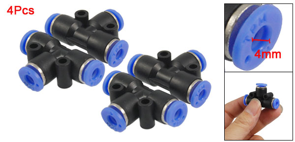 Pneumatic 4mm to 4mm T Type Push In Quick Fittings 4Pcs