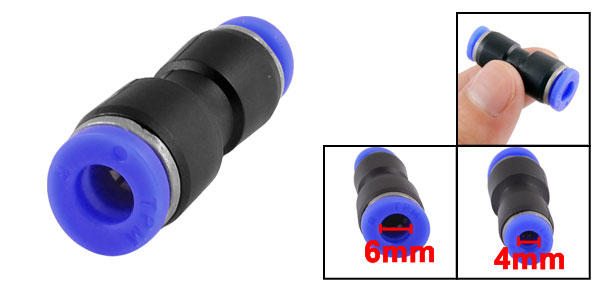 Product Name Quick Fitting Design Straight, 2 Ways Connector Type 4mm to 6mm Material Plastic Size (Approx) 32 x 15mm / 1.26" x 0.6" (L*D) Color Black, Blue Weight 14g Package Content 1 x Pneumatic Quick Fittings - Reviews