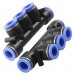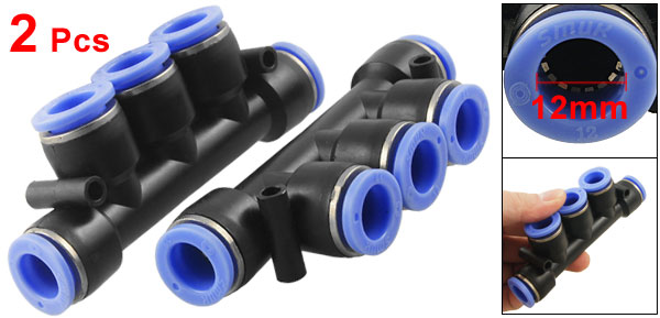 Product Name Pneumatic Quick Fittings Connector Type 12mm to 12mm ( 5 Way) Material Plastic Dimension (Approx) 10.4 x 4 x 2cm/ 4.1" x 1.57" x 0.8" (L*W*T) Main Color Black, Blue Weight 100g Package Content 2 x Pneumatic Quick Fittings - Reviews