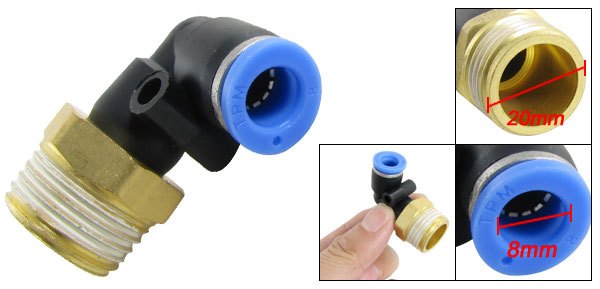 Item Name Quick Fittings Overall Size 40 x 33 x 21mm/1.6" x 1.3" x 0.8"(L*W*T) Inner Diameter (Blue End) 8mm/0.315“ Thread Diameter 20mm/0.787" Material Chrome-plated Brass & Plastic Color Black, Gold Tone, Blue Weight 33g Package Content 1 x Quick Fittings - Reviews