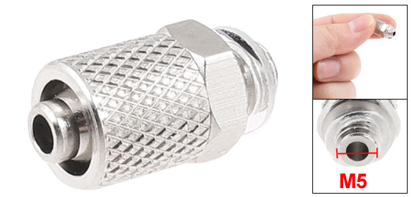 Product Name Quick Coupler Thread Size M5 Male Thread Dia 5mm/ 0.19" Fit Tube 3 x 4mm/ 0.12" x 0.16" (Inner Dia.*Outer Dia.) Overall Size 16 x 9mm/ 0.63" x 0.35" (L*Max.D) Color Silver Tone Material Metal Weight 4g Package Content 1 x Quick Coupler - Reviews