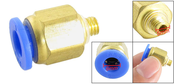 Product Name Quick Fitting Medium Air & Water Material Plastic, Metal Thread Diameter (Approx.) 5mm Inner Diameter (Blue End) 6mm Total Dimension (Approx. ) 20 x 12mm / 0.8" x 0.47"(Max. L * D) Color Gold Tone & Blue Weight 7.7g Package Content 1 x Quick Fitting - Reviews