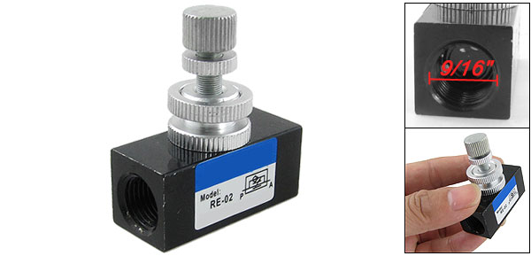 Product Name Flow Control Valve Model RE-02 Flow Direction One-Way Restrictive Valve Working medium Air Joint Pipe Bore Size G1/4'' Female Thread Dia 14mm/9/16" Working pressure 1.5~8kgf/cm2 Working temperature 0~60 oC Overall Size 4.3 x 1.9 x 4.8cm/1.7" x 0.75" x 1.88"(L*W*H) Material Metal Main Color Black Net Weight 57g Package Content 1 x Flow Control Valve - Reviews