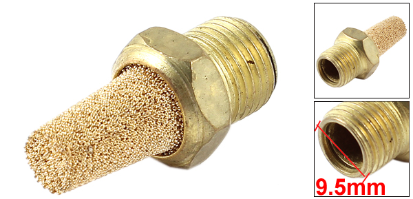 9.5mm/ 1/8 PT Overall Size 25 x 13mm/2" x 0.51"(L*Max.D) Material Brass Color Gold Tone Net Weight 7g Package Content 1 x Pneumatic Muffler - Reviews