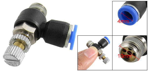 Product Name Speed Control Fitting Material Plastic, Metal Thread Diameter (Approx.) 10mm / 3/8" Inner Diameter (Blue End) 4mm / 5/32" Total Dimension (Approx. ) 3.6 x 2.8 x 1.5cm / 1 7/16" x 1 1/8" x 5/8" (L * W *T) Color Black, Blue Weight 16g Package Content 1 x Speed Control Fitting - Reviews