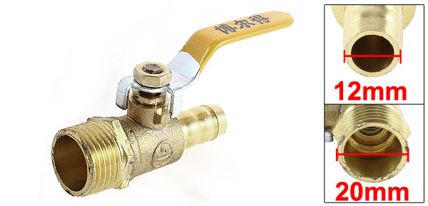 Pneumatic Fitting 20mm Male Thread to 12mm Hose Tail Connector Gas Ball Valve