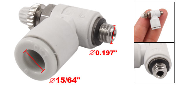Product Name Pneumatic Speed Controller Fit Tube 6mm / 15/64"(0.236") Male Thread OD M5 (5mm / 0.197") Overall Size 23 x 12 x 28mm / 0.9" x 0.47" x 1.1"(L*W*H) Material Plastic, Metal Color As Picture Show Weight 8g Package Content 1 x Pneumatic Speed Controller - Reviews