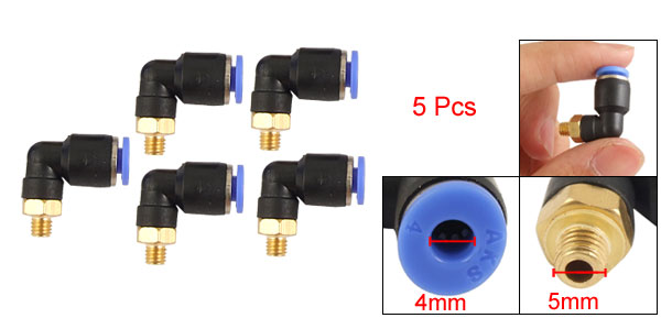 Pneumatic Parts 4mm Push In Tube Right Angle Connector 5 Pcs