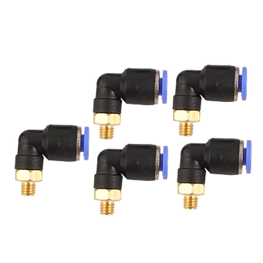 Product Name Pneumatic Quick Coupler Material Plastic, Metal Thread Diameter 5mm/0.2'' Inner Diameter (Blue End) 4mm/0.16'' Total Size (Each ) 23 x 22 x 12mm/0.9'' x 0.9'' x 0.5'' (L*W*T) Color Black, Blue, Gold Tone Weight 21g Package Content 5 x Pneumatic Quick Coupler - Reviews