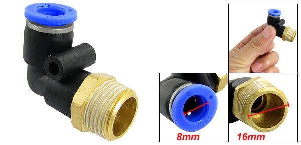 Item Name Quick Fittings Overall Size 37 x 30 x 17mm/1.4" x 1.2" x 0.7"(L*W*T) Inner Diameter (Blue End) 8mm/0.315" Thread Diameter 16mm/0.63" Material Chrome-plated Brass & Plastic Color Black, Gold Tone, Blue Weight 21g Package Content 1 x Quick Fittings - Reviews