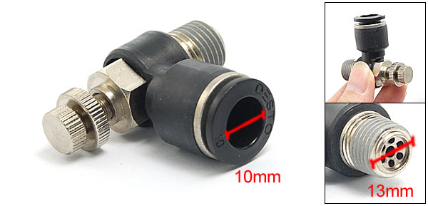 Product Name Pneumatic Speed Controller Inner Diameter (Black End) 10mm / 0.394" Thread Outer Diameter 13mm / 0.51" (Approx) Total Size 45 x 42mm / 1.8" x 1.7" (L*W) Material Plastic, Metal Color Black, Silver Tone Weight 43g Package Content 1 x Speed Controller - Reviews