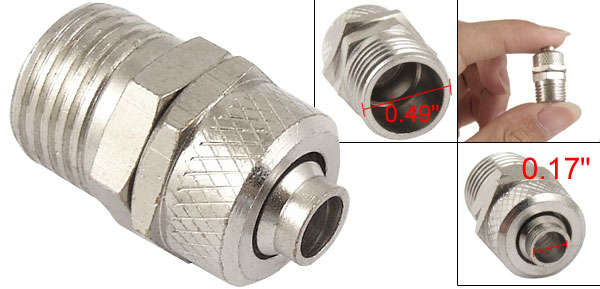 Product Name Air Fitting Material Metal Color Silver Tone Thread Diameter 12.5mm/0.49" Port Inside Diameter 4.3mm/0.17" Overall Size 23 x 15mm/0.9" x 0.6"(L*W) Weight 12g Package Content 1 x Air Fitting - Reviews