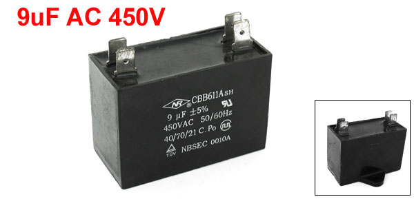 Product Name Motor Run Capacitor Material Polypropylene Film Rated Capacitance 9uF Rated Frequency 50/60 Hz Rated Voltage 450V AC Overall Size 57 x 50 x 40mm/ 2.2" x 1.97" x 1.57"(L*W*T) Mount Hole Dia 4.5mm/ 0.2" Pin Spacing 38 x 6.7mm/ 1.49" x 0.26"(L*W) Main Color Black Net Weight 78g Package Content 1 x Motor Run Capacitor - Reviews