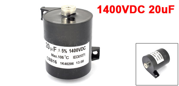 Product Name Welder Capacitor Model CBB16 Material Metallized Polypropylene Film Housing Material Plastic Rated Capacitance 20uF Tolerance ±5% Rated Voltage 1400VDC Overall Size 5 x 6cm/ 2" x 2.4"(D*L) Mount Hole Dia 5mm/ 0.2" Screw Mount Hole Dia 5mm/ 0.2" Main Color Black Net Weight 178g Package Content 1 x Welder Capacitor - Reviews