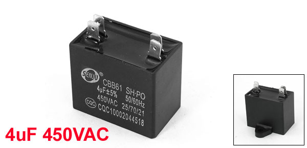 Product Name Motor Run Capacitor Model CBB61 Material Polypropylene Film Rated Capacitance 4uF Tolerance ±5% Rated Frequency 50/60 Hz Rated Voltage 450V AC Overall Size 3.8 x 3.2 x 2.3cm / 1.5" x 1.26" x 0.9" (L*W*H) Mount Hole Dia 5mm / 0.2" Pin Size 7 x 5mm / 0.28" x 0.2" (L*W) Pin Spacing 21 x 4mm / 0.83" x 0.16"(L*W) Main Color Black Weight 34g Package Content 1 x Motor Run Capacitor - Reviews