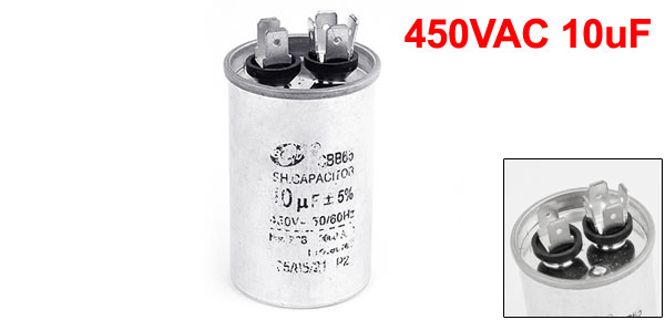 Product Name Motor Capacitor Material Polypropylene Model CBB65 Capacitance 10uF Rated Voltage AC 450V Tolerance ±5% Frequency 50/ 60Hz Operating Temperature 25/85/21 Body Dimension 6.5 x 3.8cm/ 2.6" x 1.5"(H*D) Total Length 7.5cm/ 2.95" Color Silver Tone Weight 197g Package Content 1 x Motor Capacitor - Reviews