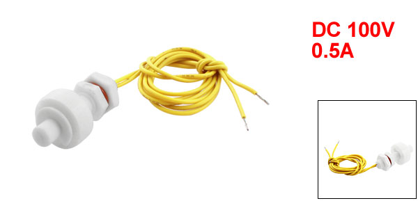Product Name Float Switch Max Contact Rating 10W Max Switching Voltage DC 100V Max Switching Current 0.5A Max Breakdown Voltage DC 220V Max Carry Current 1.0A Max Contact Resistance 100mΩ Temperature Rating -10 ~ +60 °C / 85 °C Float Ball Size(Approx) 18 x 7mm /0.71" x 0.28"(D*T) Thread Dia(Approx) 8mm / 0.31" Nut Dia(Approx) 15mm / 0.6" Bottom Clip Dia(Approx) 13.5mm / 0.53" Straight Bar Dia 6.5mm/0.25" Body Total Length 35mm /1.4" Total Length 40cm /16" Material Plastic Color White, Yellow Net Weight 7g Package Content 1 x Float Switch - Reviews